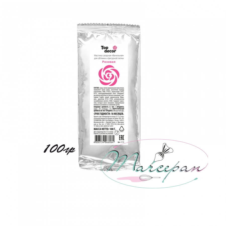 —мастика сахарная ванильная (розовая) 100гр