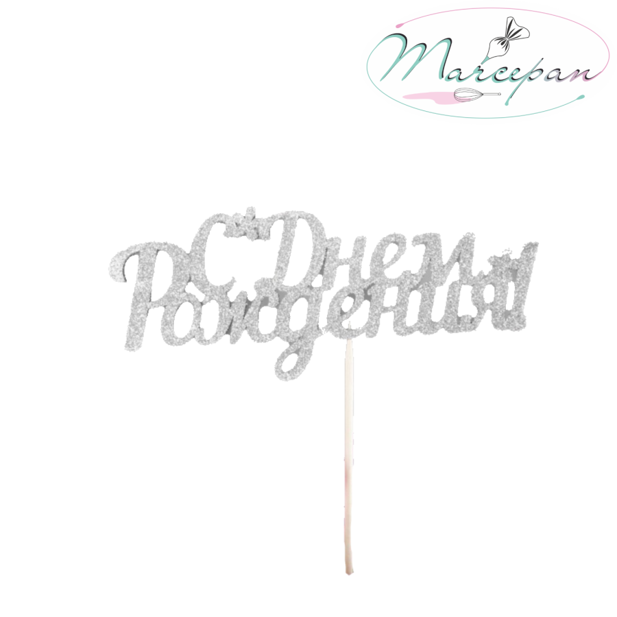 —Топпер дерево сереб глиттер С днем рождения