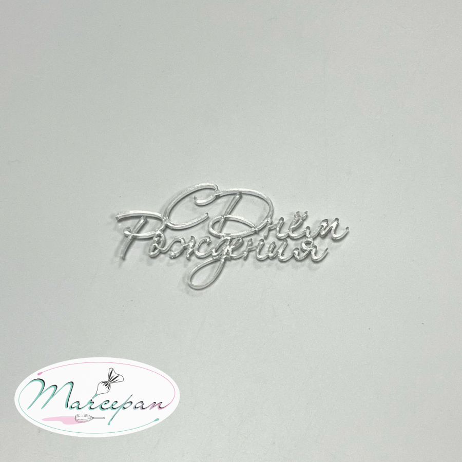 —Топпер акрил С днем рождения серебро торцевой