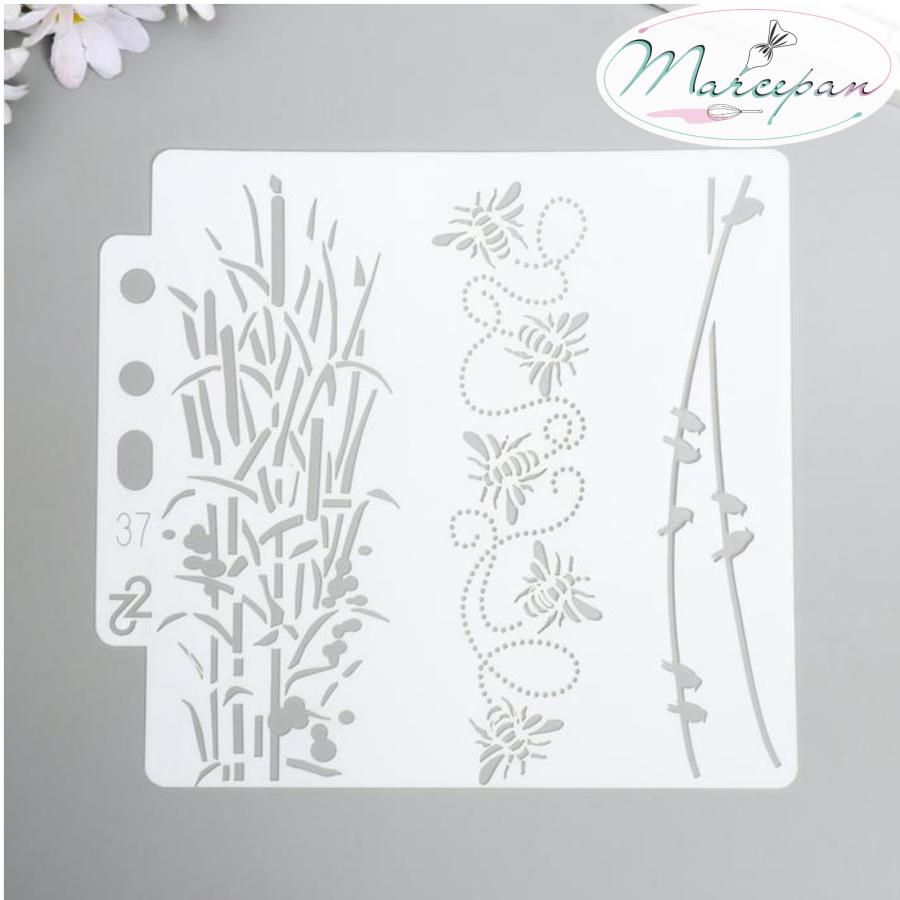 —Трафарет пластик "Бамбук, пчёлки и птицы на проводах" 13х14 см 5478033
